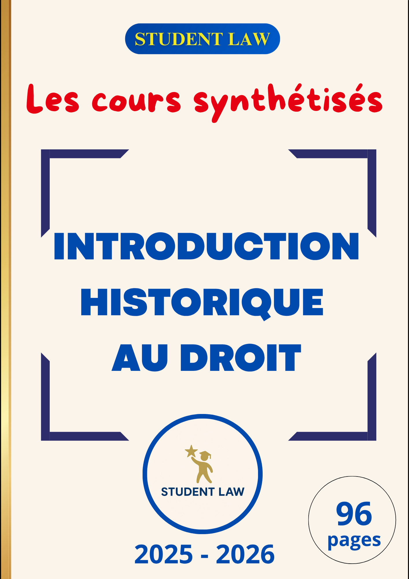 100 pages de cours répartis en 9 grandes parties pour valider Introduction historique au droit aux partiels et réussir ton année.
